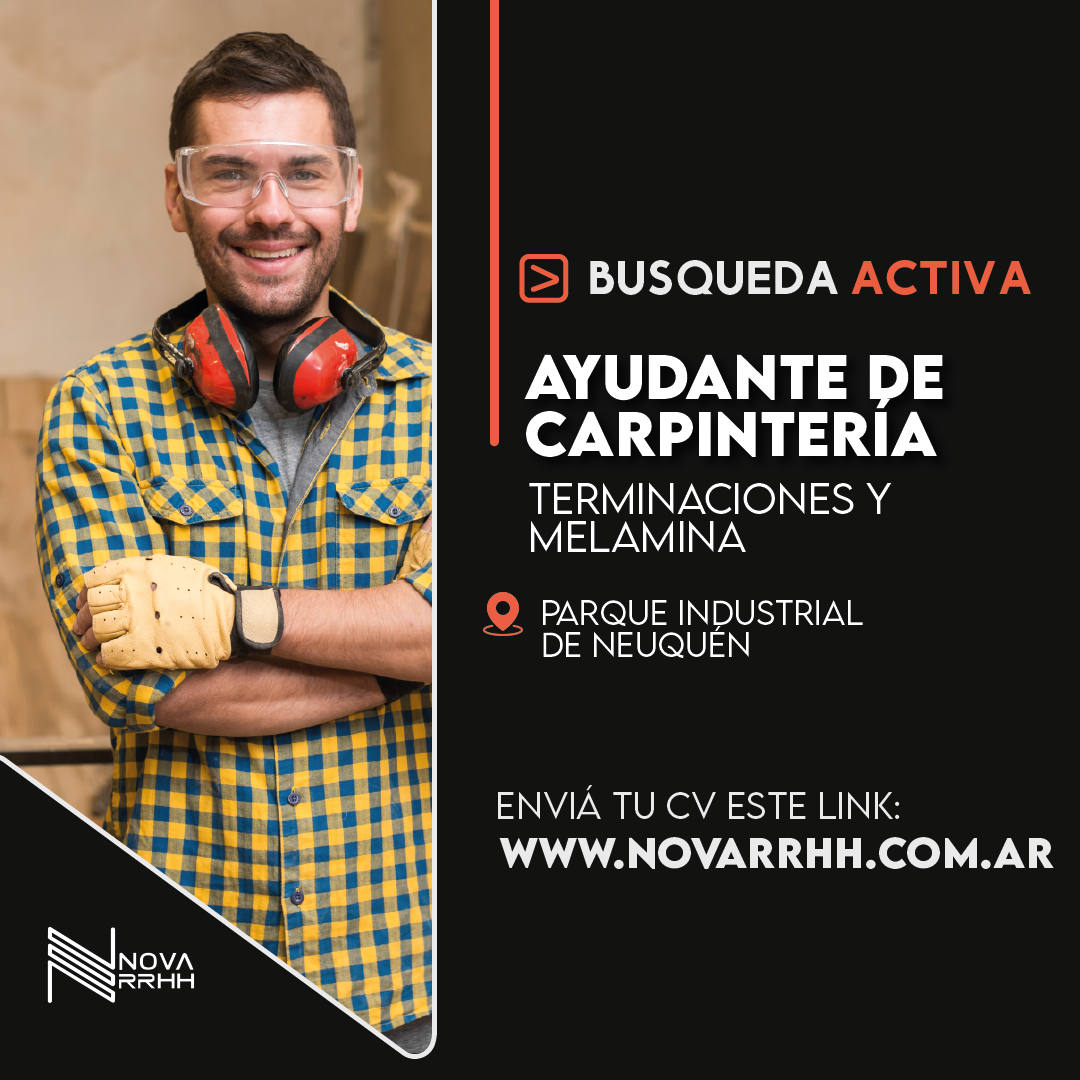 🔰 Empresa de servicios incorpora un Ayudante de Carpintería para tareas de montaje, reparación y terminaciones de mobiliario interior en trailers habitacionales. Buscamos un perfil con habilidades manuales, experiencia en muebles de melamina y predisposición para el trabajo en equipo.