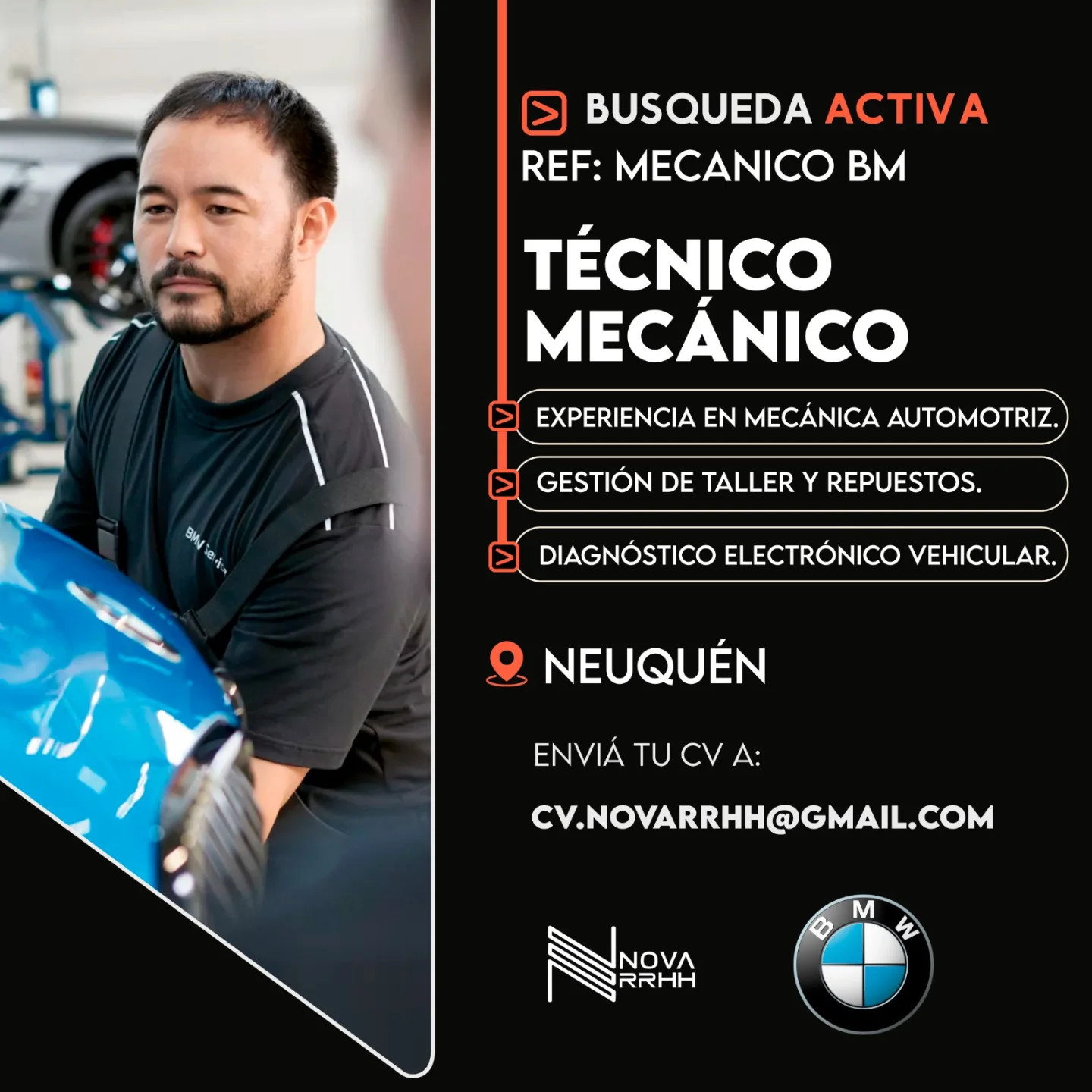 📣Los interesados deberán enviar CV actualizado con referencias comprobables y remuneración pretendida, indicando en el asunto REF: MECANICO BM, a cv.novarrhh@gmail.com