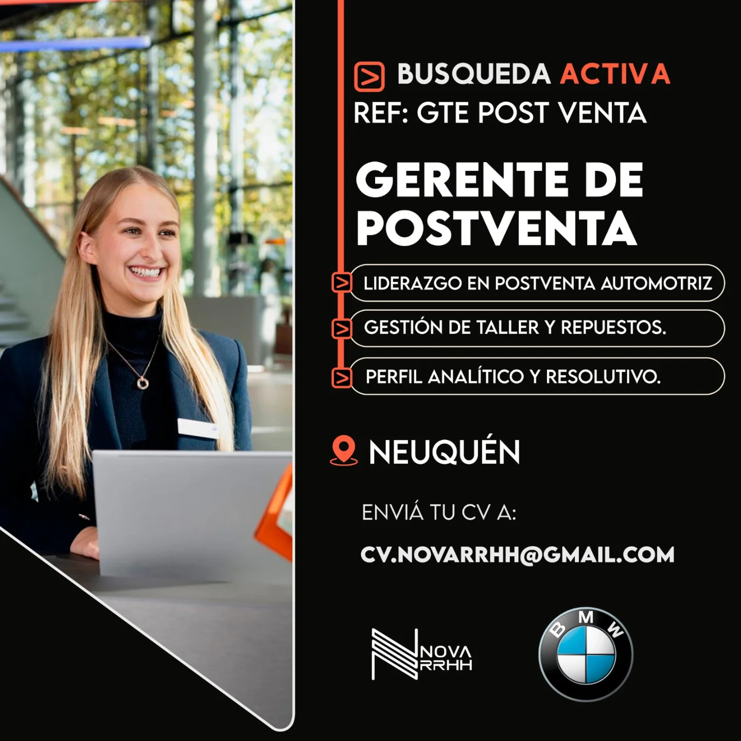 馃摚 Los interesados deber谩n enviar CV actualizado con referencias comprobables y remuneraci贸n pretendida, indicando en el asunto REF: GTE POST VENTA, a cv.novarrhh@gmail.com