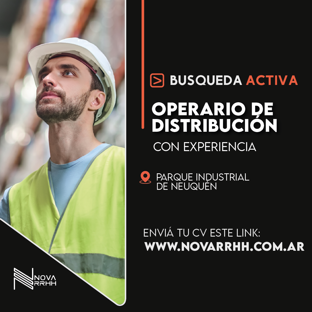 🔰 Empresa del rubro industrial incorpora dos (2) Operarios de Distribución para desempeñarse en su planta ubicada en el Parque Industrial de Neuquén.