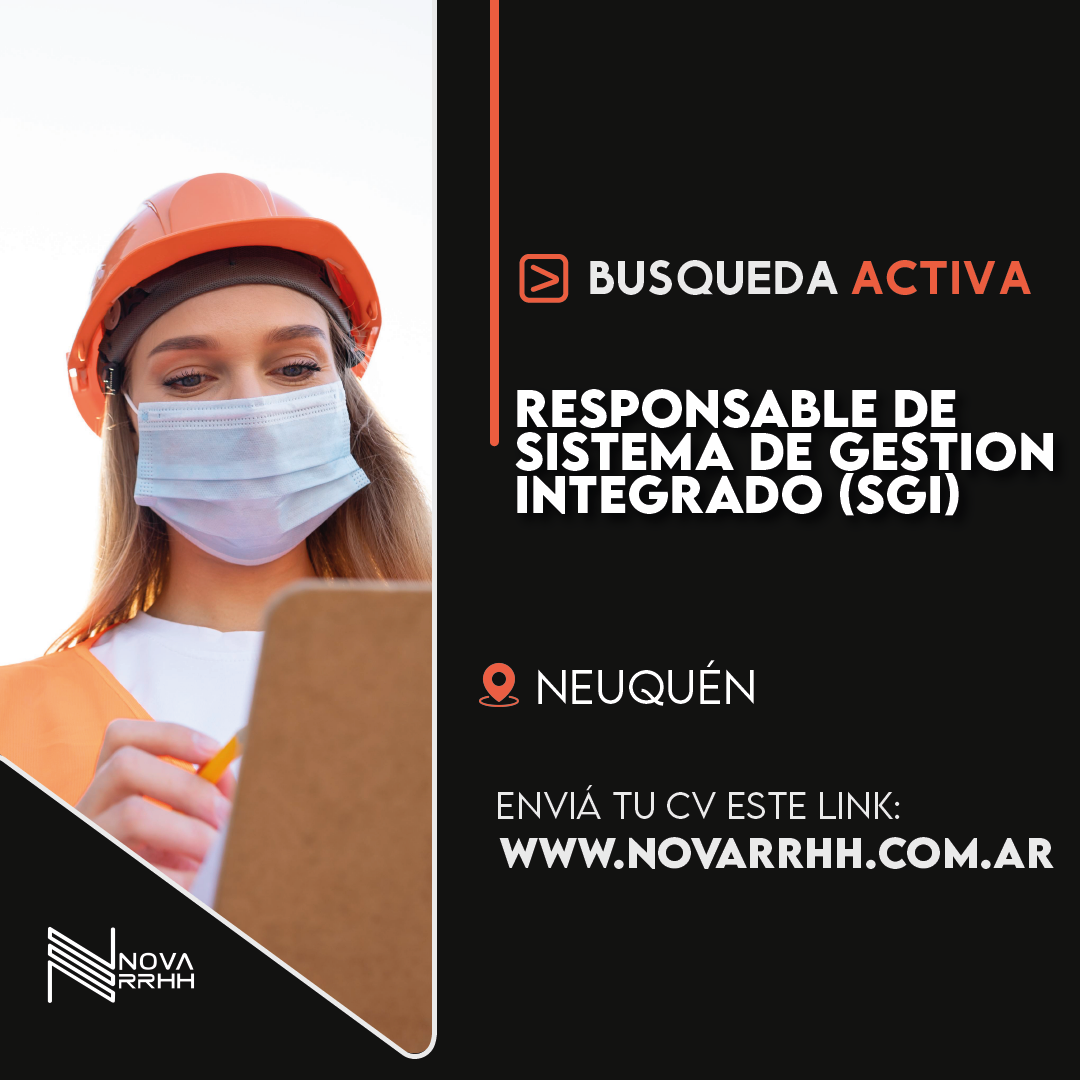 🔰 Importante empresa constructora y desarrolladora de primera línea, ubicada en Neuquén Capital, se encuentra en la búsqueda de un/a Responsable de Sistema de Gestión Integrado (SGI) para incorporarse de manera presencial y full time, de lunes a viernes de 8 a 17 hs.