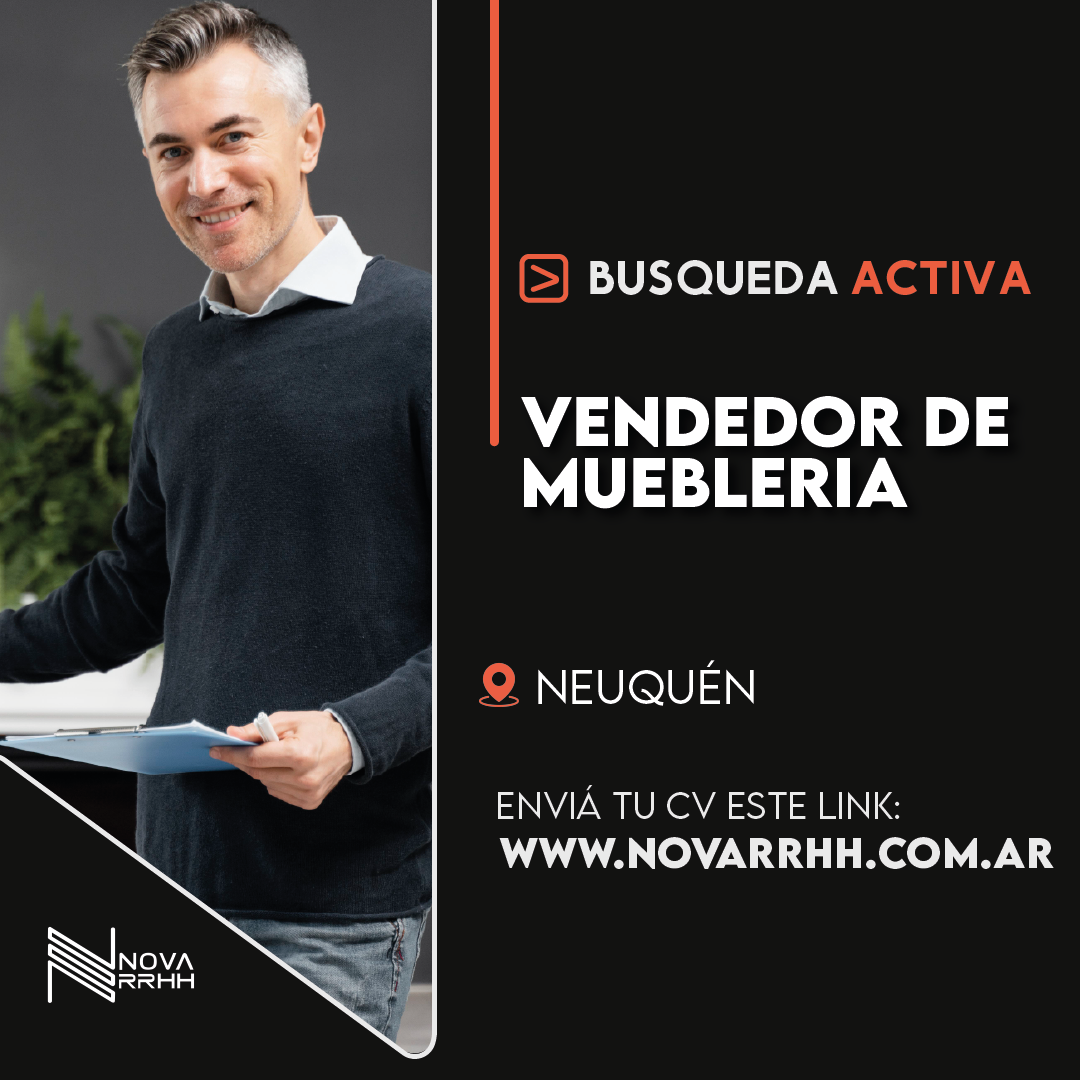 Importante cadena de mueblerías de Neuquén Capital se encuentra en la búsqueda de un Vendedor (sexo masculino excluyente) para incorporar a su equipo comercial.