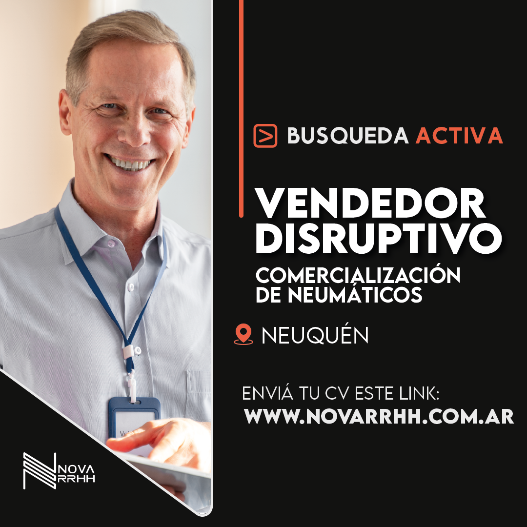 Nos encontramos en la b煤squeda de un Vendedor Disruptivo para sumarse a un equipo en pleno crecimiento y trabajar codo a codo con el Gerente General en el desarrollo y expansi贸n del 谩rea comercial de neum谩ticos.